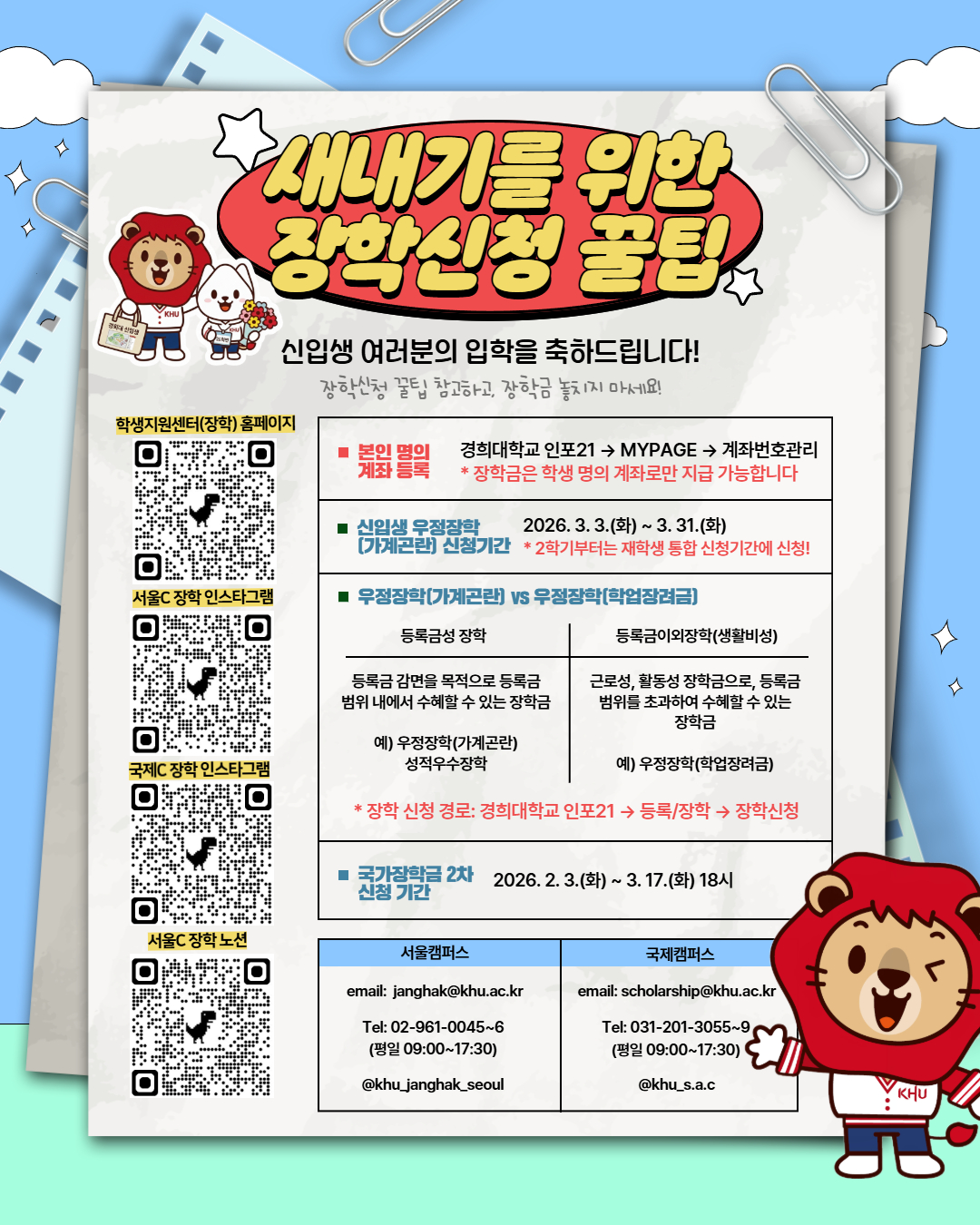 2026학년도 새내기를 위한 장학신청 꿀팁 안내문(⭐인포21 본인 명의 계좌 등록⭐)