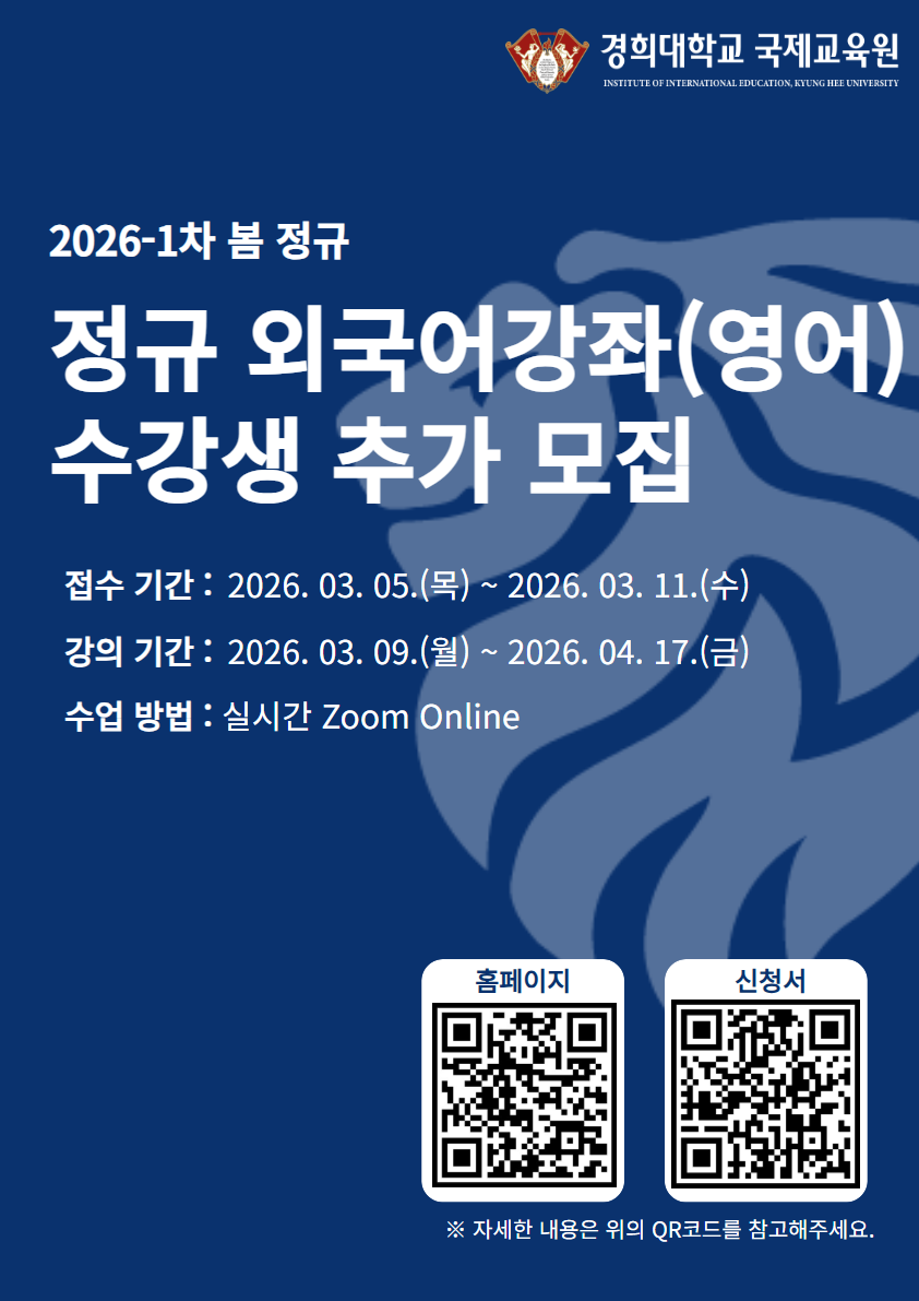 [외국어교육부] 2026-1차 봄 정규 외국어과정 수강생 추가 모집 공지
