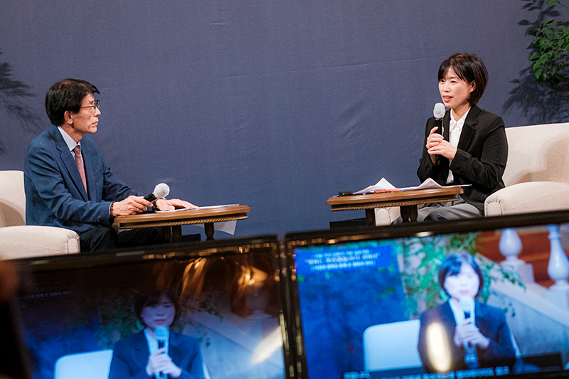 이어진 기념 대담은 조인원 경희학원 이사장을 대담자로 초청해 권기붕 경희대학교 평화복지대학원 원장의 사회로 진행됐다. 대담에서는 설립자 철학의 핵심을 짚고, 그 사상이 지금의 경희와 인류사회에 전하는 가르침에 관해 논의했다. 설립자는 평화와 인류 번영을 생애 화두로 삼았다. 전승화(全乘和) 철학을 구축해 보편 규범을 탐색하고, 우주와 인간, 인간과 문명을 포괄하는 사상을 정립했다. 그는 전일적(全一的) 세계관으로 인간과 지구 생명이 함께 살아가는 지구공동사회를 꿈꿨다. 설립자의 철학은 기후위기, 핵, 전쟁의 위협, 불평등, 기아와 난민 등 인류가 마주한 복합적 문제와 절멸의 위기 앞에서 문명 전환의 필요성과 실마리를 제시한다.