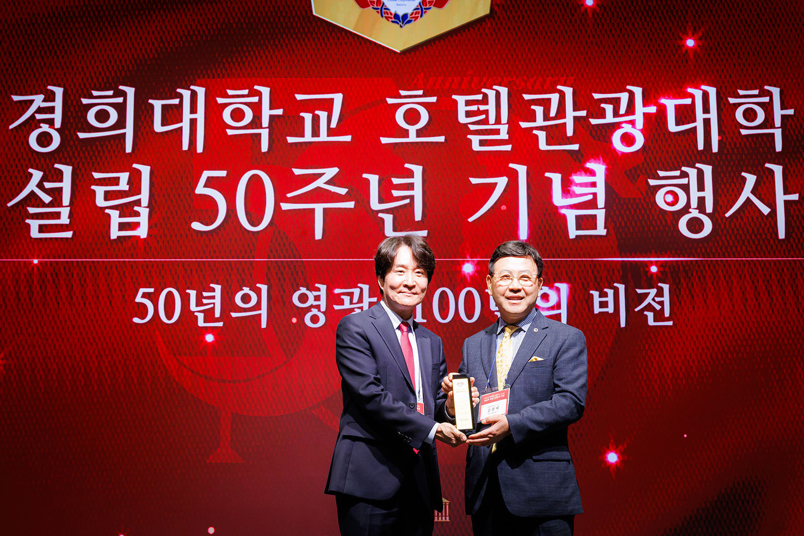 김 동문은 1978년 당시 호텔경영전문학교 경영과에 입학했다. 이후 한국의 대기업에 공채로 입사해 호텔에서 근무하다 일본에 진출해 호텔 사업가로 큰 성공을 거뒀다. 현재 재일본한국인총연합회 회장과 경희 총동문회 일본지부 회장을 역임하며 한국과 일본, 그리고 경희를 잇는 민간 외교관의 역할도 수행 중이다. 이런 노고를 인정받아 지난 11월 말 개최된 호텔관광대학 설립 50주년 기념행사에서 ‘자랑스러운 호텔관광인상’을 받았다(