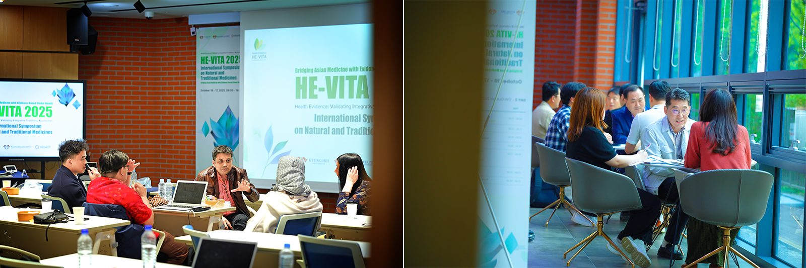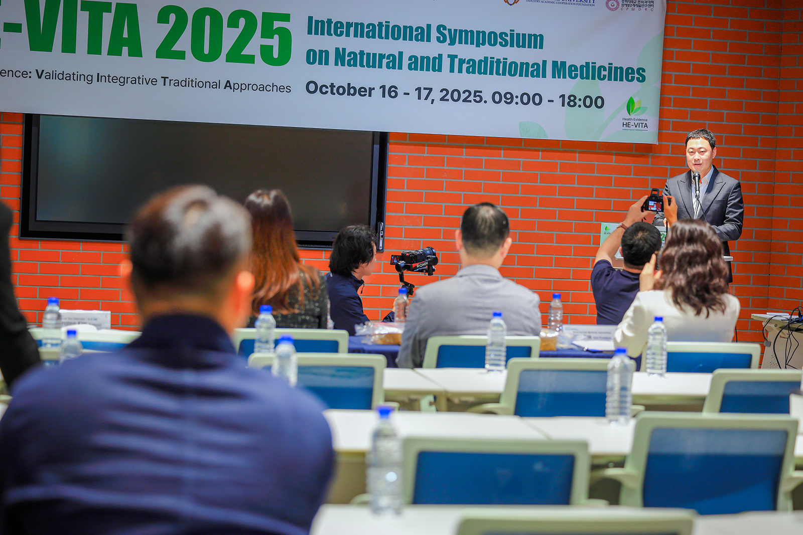 한의과대학과 산학협력단이 한의약 및 천연물 기반 연구 성과의 기술사업화 연계를 위해 ‘HE-VITA 2025 국제 심포지엄(Health Evidence: Validating Integrative Traditional Approaches 2025 International Symposium on Natural and Traditional Medicine)’을 10월 16일(목)~17일(금) 양일간 서울 바이오허브에서 진행했다. 심포지엄의 주제는 ‘아시아 전통 의학, 근거 기반 글로벌 헬스와 만나다(Bridging Asian Medicine with Evidence-Based Global Health)’였다. 국내외 관련 분야 전문가와 기업 관계자 70여 명이 온오프라인으로 참여해 열띤 교류의 장을 만들었다.