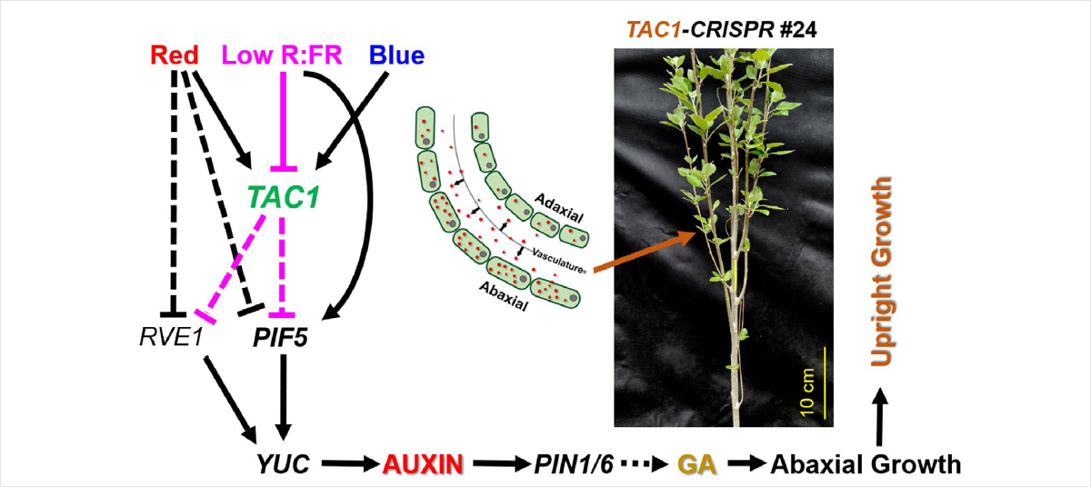 그림 설명. 수목 수형 형성을 결정하는 TAC1의 조절 매커니즘