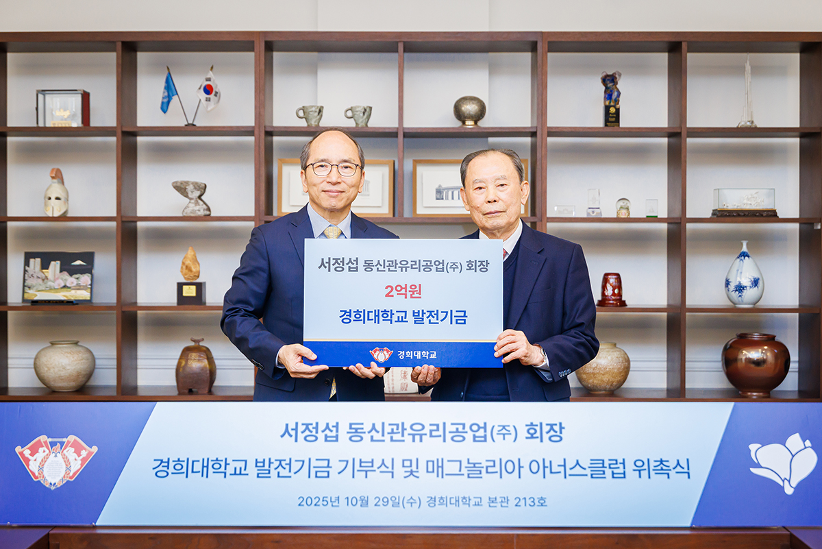김진상 총장은 서정섭 동문의 기부에 감사 인사를 전하며 “학업과 일을 병행하며 어려움을 극복한 서 동문의 일생이 경희 구성원에게 큰 귀감이 된다”라고 전했다.