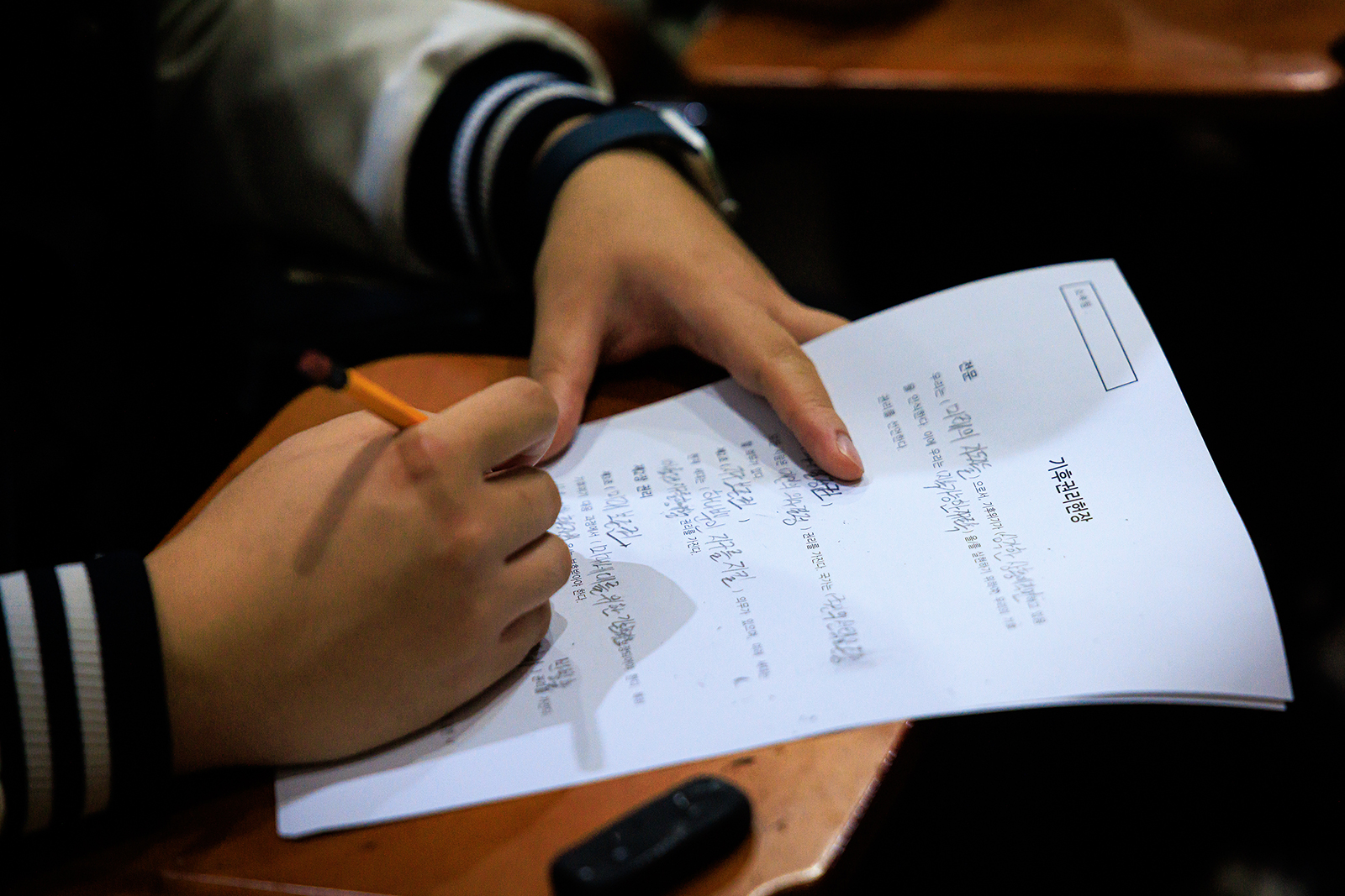 청년 평화 포럼의 두 번째 세션은 기후권리헌장 작성과 발표였다. 참석자들은 헌장의 ‘전문’ ‘본문’ 등을 통해 기후 위기 대응을 위한 미래세대의 책임과 권리를 선언했다. “우리는 미래의 지도자들로서, 기후 위기가 심각한 상황을 직면하고 있음을 인식한다. 이에 우리는 지속 가능한 지구 존속을 실현하기 위하여, 우리의 기후 권리를 선언한다” 한 참석자가 작성한 기후권리헌장의 전문이다. 현장에 참가한 미래세대는 기후 위기의 앞에서 자신의 권리를 명확히 하며, 지속 가능한 지구를 상상했다.