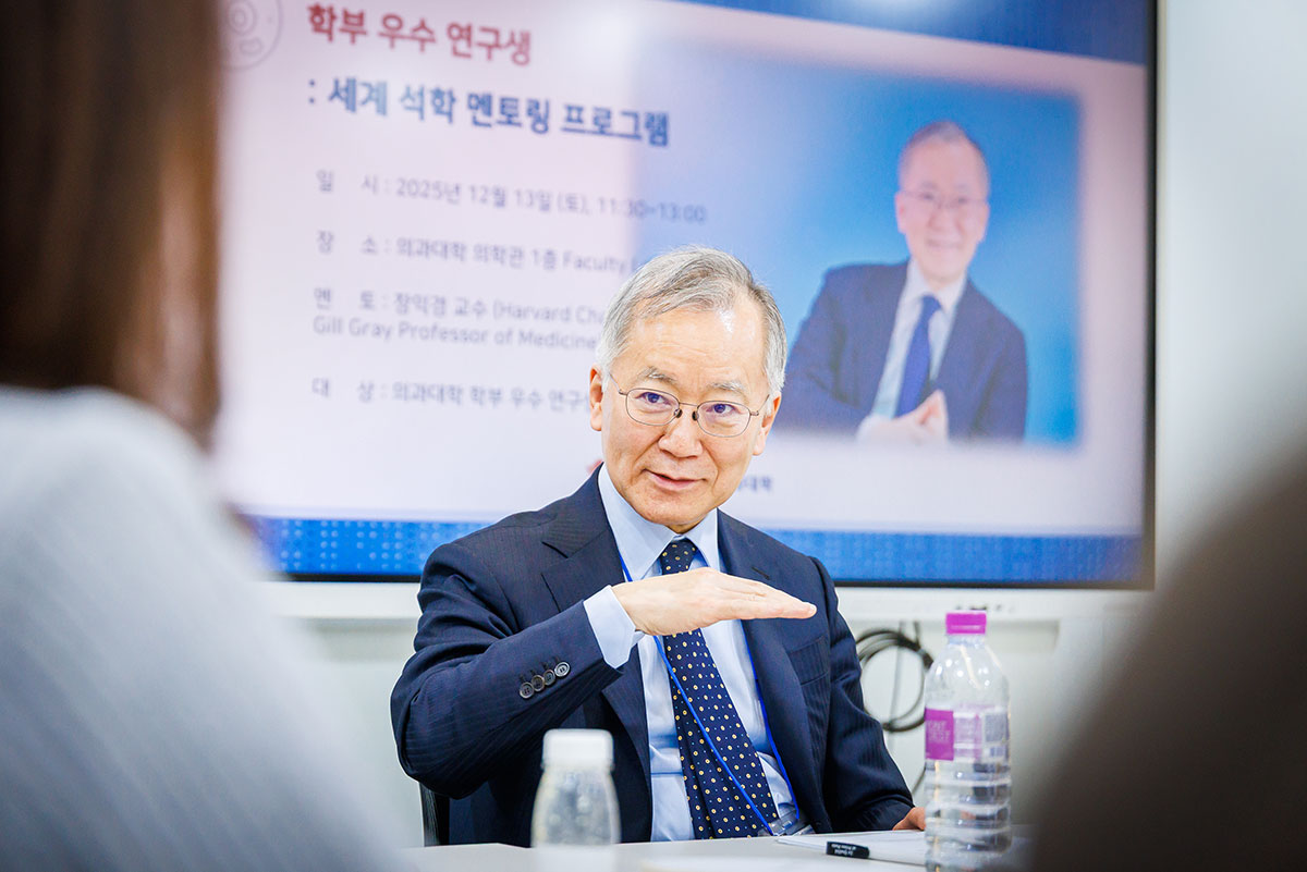 의과대학은 지난 13일 의학관 패컬티 라운지(Faculty Lounge)에서 의과대학 ES(Eminent Scholar)이자 하버드 의과대학 석좌교수인 장익경 교수를 초청해 ‘우수 학부 연구생을 위한 세계 석학 멘토링 프로그램’을 개최했다. 이번 행사는 학부생 신분임에도 세계 최고 수준의 연구 성과를 내고 있는 의과대학 연구생들을 격려하고 미래 의사과학자로서의 비전을 공유하기 위해 마련됐다.