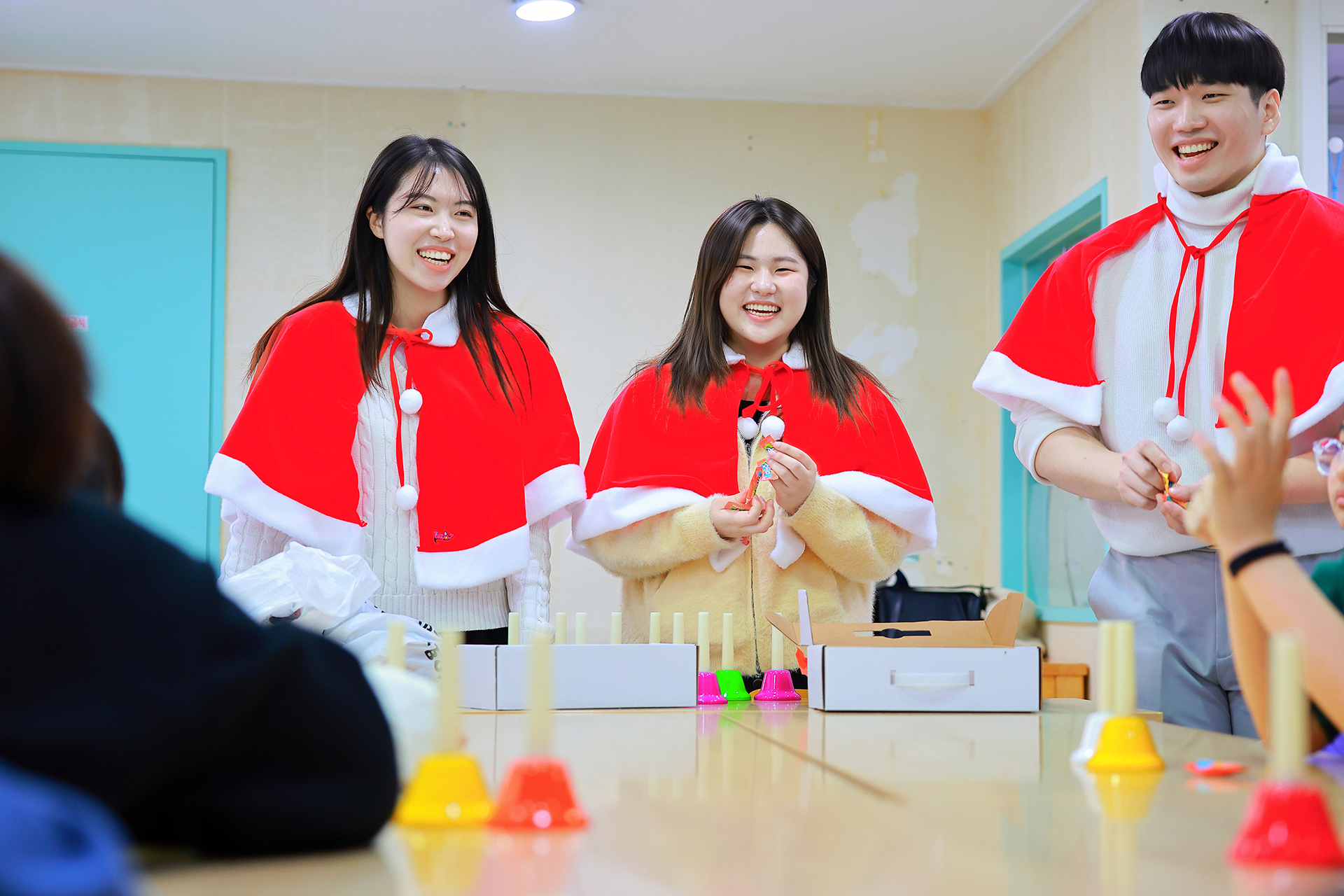 이날 행사에 참여한 재학생 6명은 산타와 루돌프 복장을 하고 지역아동센터와 기초생활수급자 등 열악한 환경에 처한 가정을 직접 방문해 선물을 전달했다. 선물 포장과 세부 활동 구성, 리허설 등 행사 전반을 직접 기획했다.