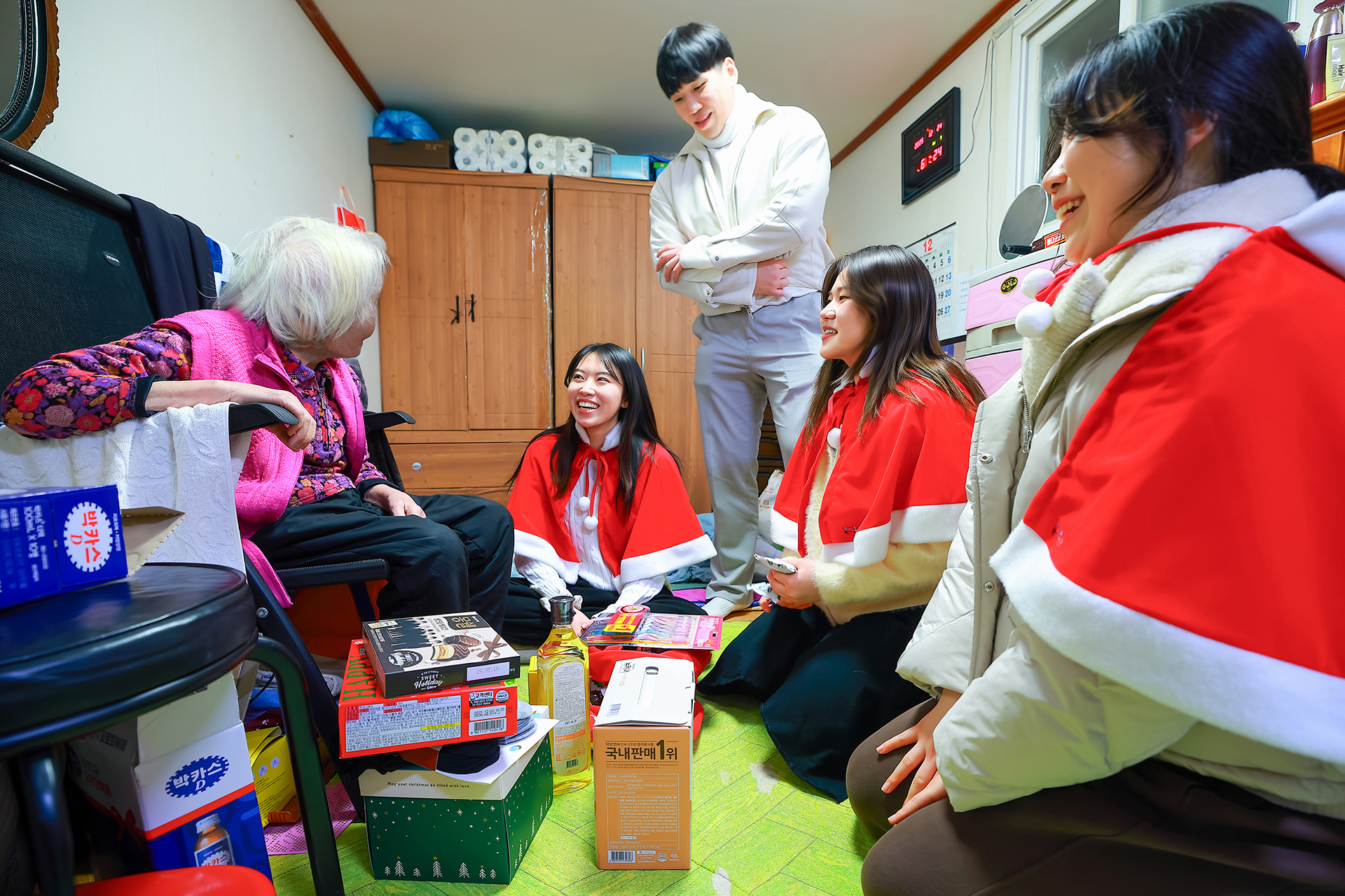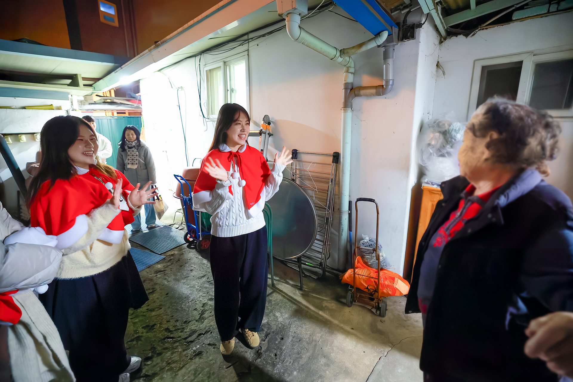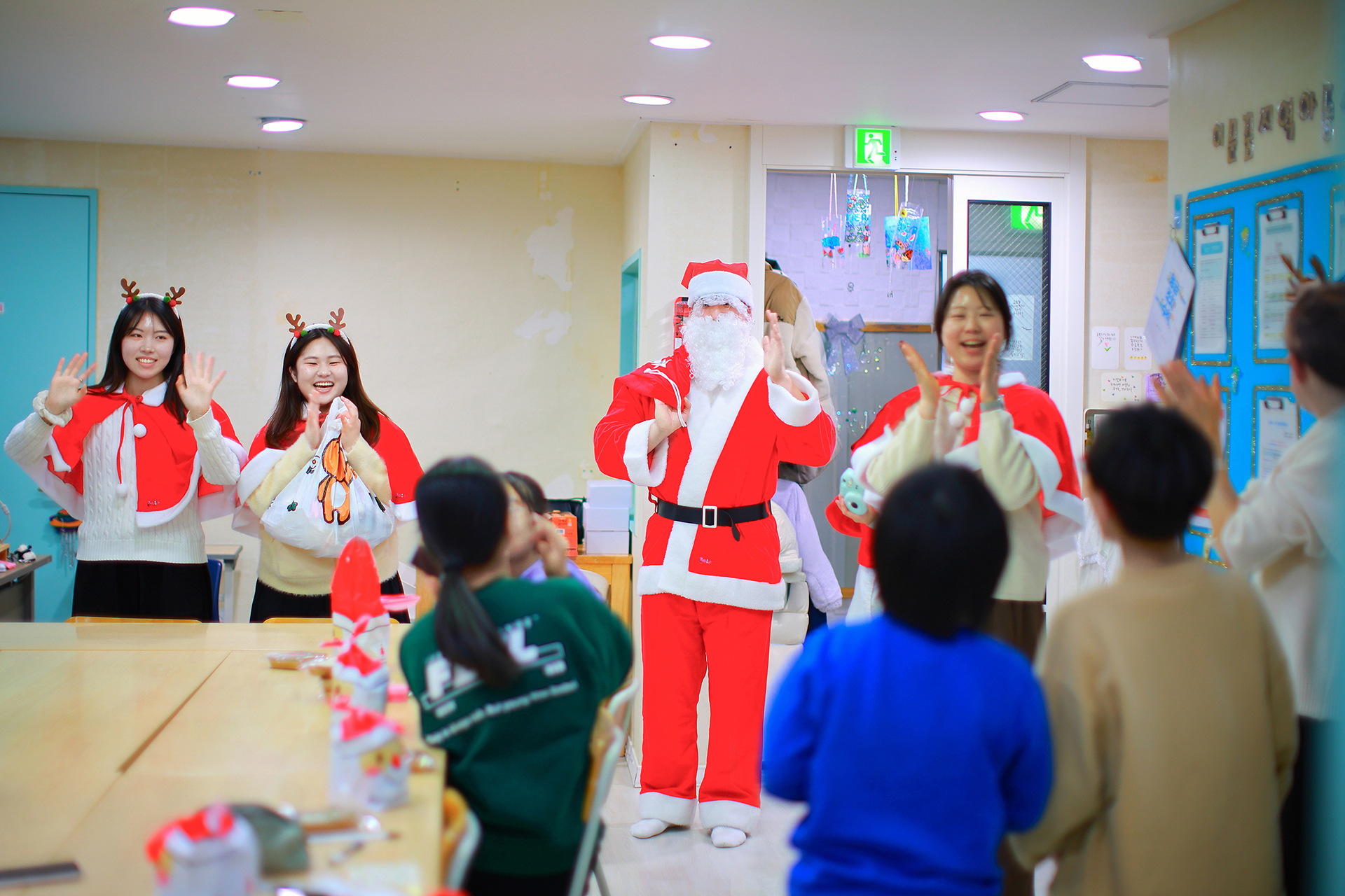 오후에는 해피아트지역아동센터와 이문꿈지역아동센터를 방문해 30여 명의 아이들과 함께 다양한 체험 활동을 펼쳤다. 학생기획단이 준비한 핸드벨 캐롤 합주, 산타에게 편지 쓰기, 눈사람 비누 만들기 등의 프로그램은 아이들의 적극적인 참여를 이끌어냈다. 저녁 시간에는 회기동 주민센터와 동대문구가족센터의 추천을 받은 다문화·한부모·독거노인 가정을 직접 방문해 맞춤형 선물을 전달했다. 각 가정의 상황을 사전에 파악해 준비한 생활용품과 식료품 등을 통해 이웃의 일상을 세심하게 살피는 마음을 담았다.
