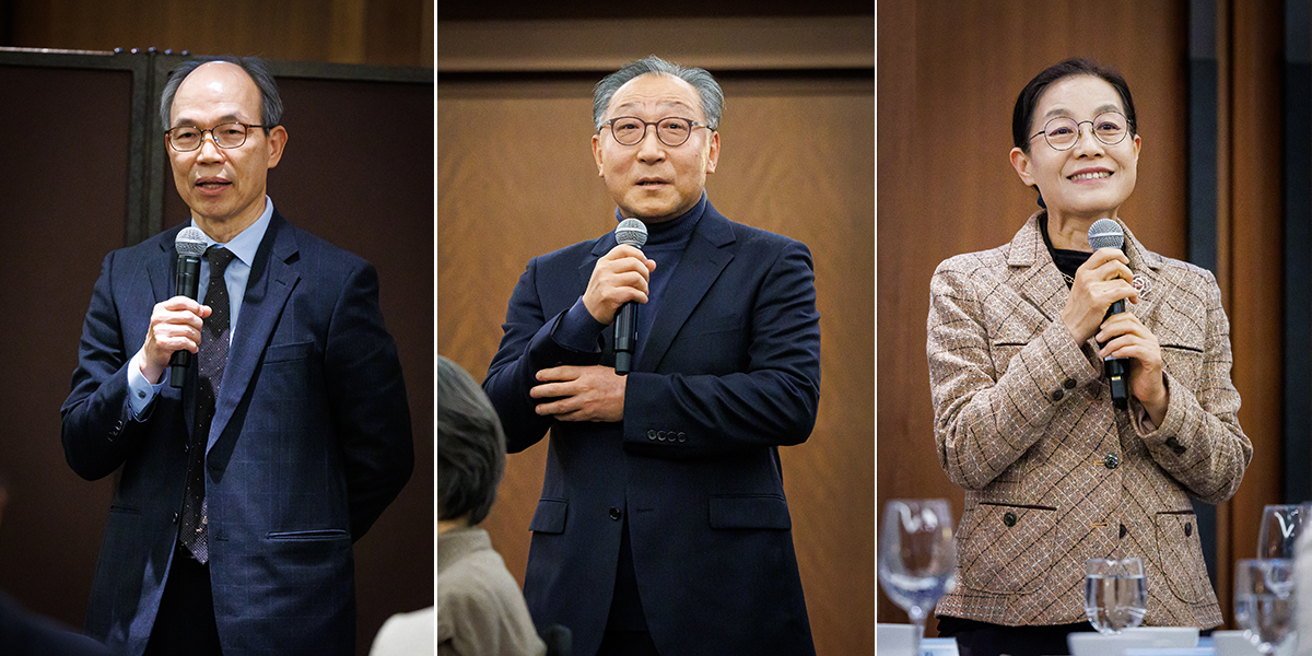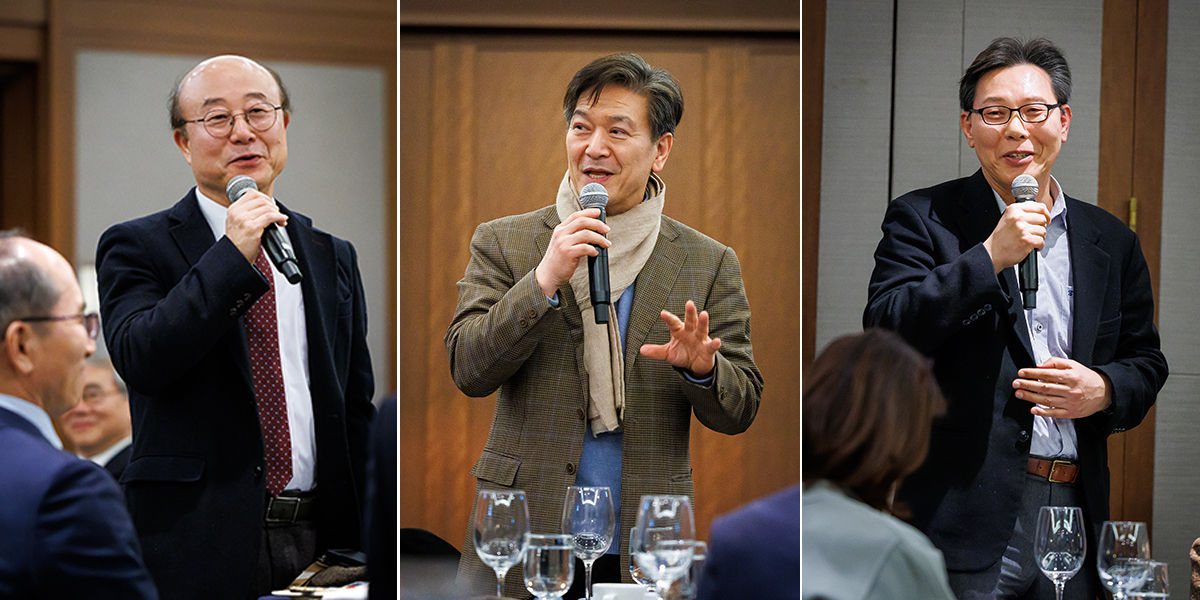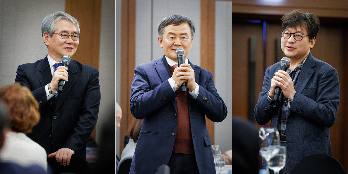 후마니타스칼리지 임형진 교수는 “학문의 시작과 마무리를 모두 경희에서 함께했다. 경희의 발전에 조금이나마 기여할 수 있어 기쁘고, 남아 있는 구성원의 저력을 믿기에 앞으로의 발전을 의심하지 않는다”고 밝혔다. 테크노경영대학원 강선무 교수는 “지나 보니 경희는 저력과 잠재력을 함께 지닌 대학이었다. 지난 시간은 정년으로 일단락됐지만, 경희 발전을 위해 보탬이 되겠다”고 말했다. 응용영어통번역학과 김규현 교수는 30여 년간의 교육과 연구 활동을 회고하며 “강의실 속 학생들의 초롱초롱한 눈망울이 가장 기억에 남는다. 강의와 연구에 몰입할 수 있게 해준 경희에 감사한다”고 전했다.